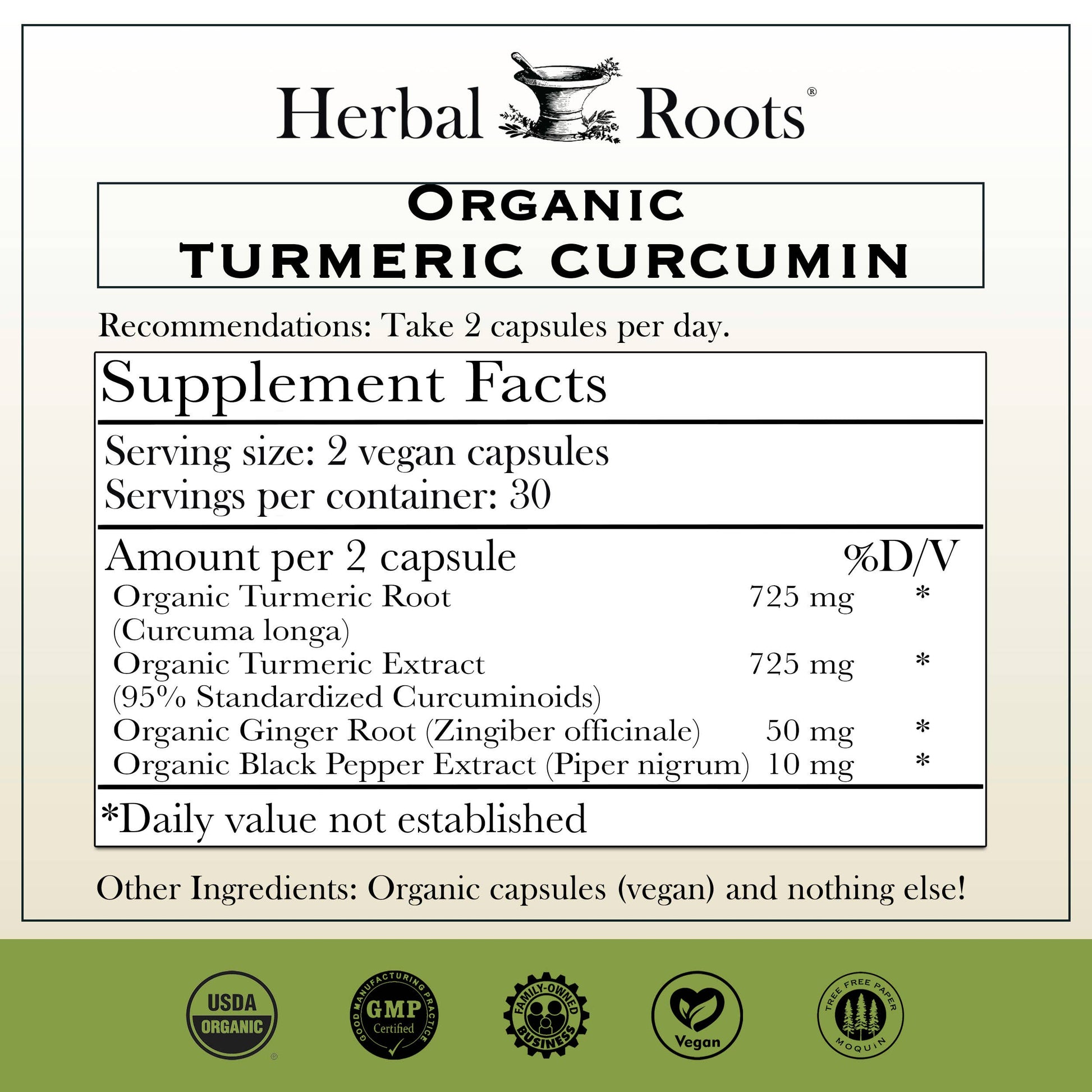 Herbal Roots Organic Turmeric Curcumin Capsules